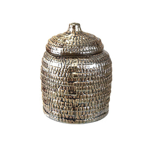 Abstract Patterned Decorative Ceramic Covered Jar, Silver