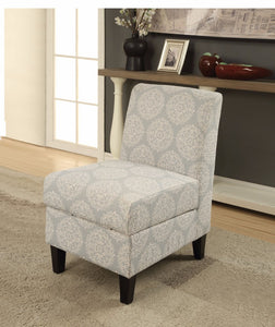 Accent Chair With Storage, Pattern Fabric, Cream and Gray