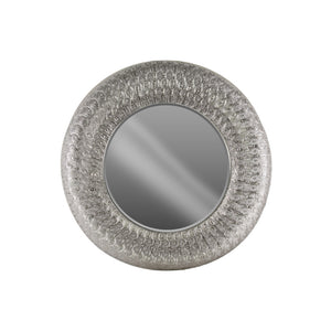 Accent Round Wall Mirror Parquet Pierced Metal Frame-Silver-Benzara