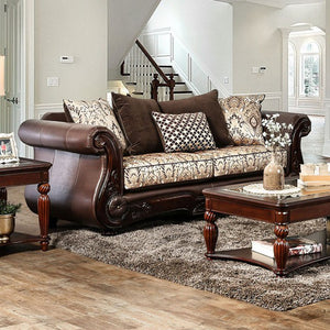 Alessio Two -Seater Cushiony Love Seat Traditional Style, Brown