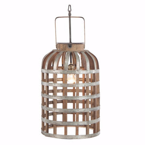 Alluring Caged Metal and Wood Hanging Lantern, Brown and Silver