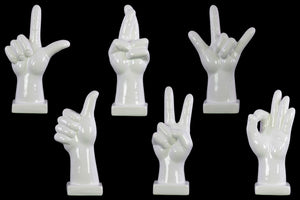 Alluring Hand Signal Sculpture on Base Assortment of 6- Large- White- Benzara