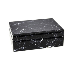Alluring Glass & Wood Marble Look Decorative Box, Black