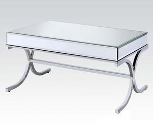 Alluring Coffee Table, Mirrored Top & Chrome Silver