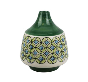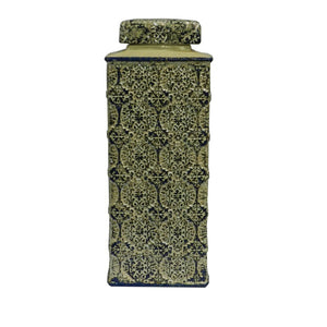 Alluring Cylindrical Tall Ceramic Vase, White and Blue