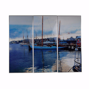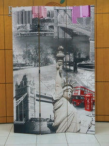 3-Panel Wooden Screen, Town Scenery, Multicolor