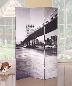 3-Panel Wooden Screen, Bridge Scenery, Black and White