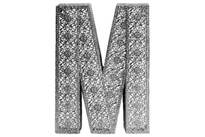 Alphabet Wall decor Letter "M" - Pierced Metal Design Large - Silver - Benzara