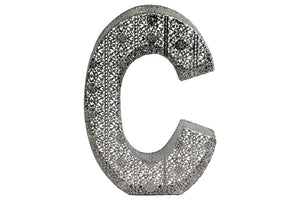 Alphabet Wall decor Letter "C" - Pierced Metal Design Large - Silver - Benzara