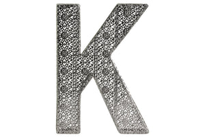 Alphabet Wall decor Letter "K" - Pierced Metal Design Large - Silver - Benzara