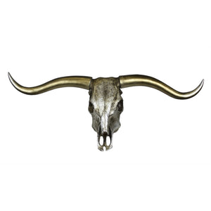 Antique Bull Skull Wall Decor With Sharp Horns, Silver