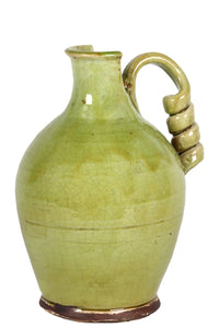 Antiquated Traditional Ceramic Tuscan Vase W/ Broad & Round Body In Green