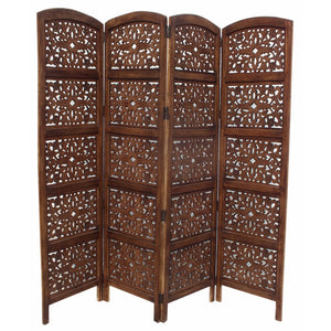 Antique Brown 4 Panel Handcrafted Wood Room Divider