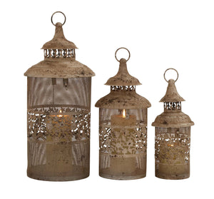 Antiqued Metal Glass Candle Holder Set of 3 - Benzara