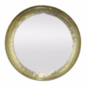 Antiqued Metal Wall Mirror - Golden - Benzara