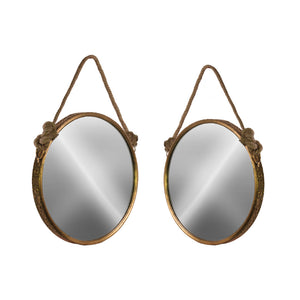 Antiqued Wall Mirror with Rope Handle Set of 2 - Gold - Benzara