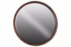 Wood Round Wall Mirror Natural Finish Brown - Benzara