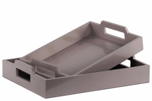 Wood Rectangular Serving Tray with Cutout Handles Set of 2 - Gray - Benzara