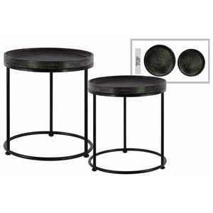 Wood Round Nesting Accent Table with 3 Metal Legs Set of 2- Black- Benzara