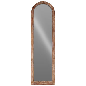 Wood Cheval Mirror with Arched Top Natural Wood Finish - Brown & Gray- Benzara