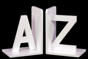 Wood Alphabet Sculpture "AZ" Bookend Assortment of 2 - White - Benzara