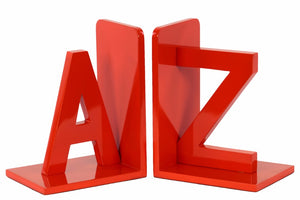 Wood Alphabet Sculpture "AZ" Bookend Assortment of 2 - Red - Benzara