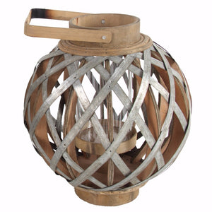 Wood and Metal Round Shanghai Lantern, Silver and Brown