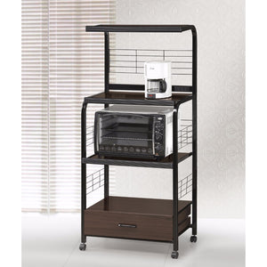 Wood and Metal Kitchen Cart On Casters, Brown and Black