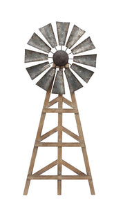 Wood And Metal Windmill Wall Decor, Brown And Gray