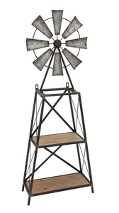 Wood And Metal Windmill Table/Wall Shelf, Gray And Black