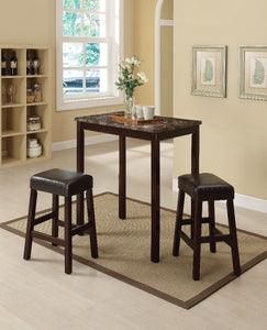 Wood & Marble Counter Height Set, 3 Piece Pack, Brown