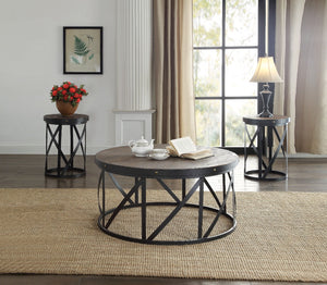 Wood & Metal 3 Piece Pack Coffee/End Table Set, Brown & Black