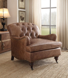 Wood & Leather Accent Chair, Retro Brown Top Grain Leather