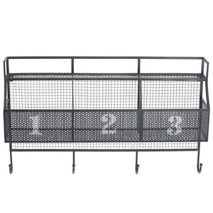 Wonderful Metal Wall Shelf With 3 Numbered Shelves And 4 Hooks