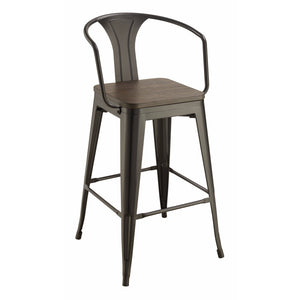 Well-made Metal Bar Height Stool With Wood Seat, Black, Set of 2