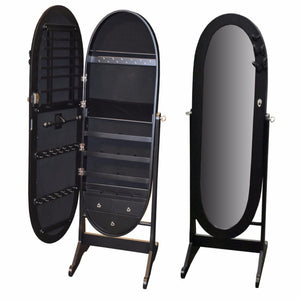 Well-design Wooden Jewelry Cabinet Stand With Mirror, Black