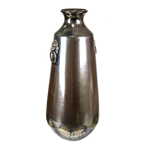 Well- Designed Ceramic Vase With Metal Handles, Gray