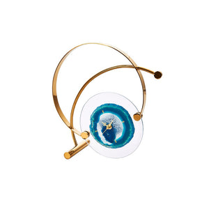 Well-designed Agate Decorative Tabletop Clock, Blue And Gold