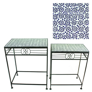 Well-Designed 2Piece Mosaic Square Planter Stand, Blue
