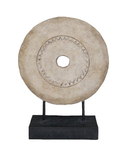 Vintage-Inspired Resin Mill Stone Decoration, Off White And Black