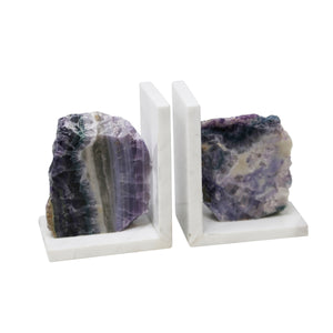 Vivid Set Of 2 Purple Marble Bookends With Agate
