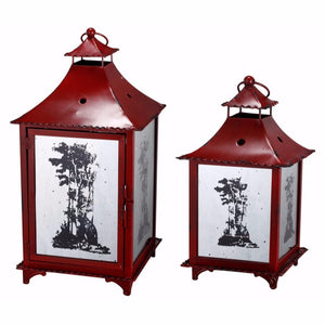 Vibrant Metal Candle Lanterns with Tree Pattern, Set of Two, Red