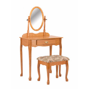 Vanity Table And Stool Set With Oval Mirror, Oak Brown
