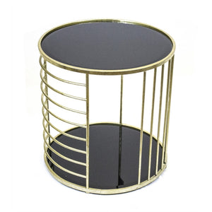 Utterly Astonishing Gold Metal and Black Glass Accent Table