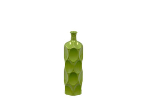 Unique Ceramic Bottle W/ Thin Mouth & Circular Embedded Design Body In Green Small
