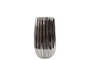Ultra Stylish Ceramic Vase W/ Embossed Lines In Silver Color