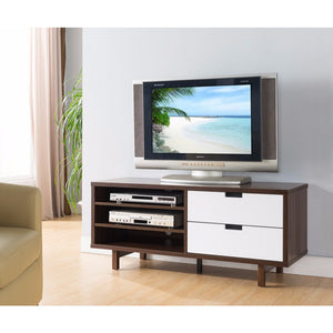 Two Toned Compact TV Stand With Display Decks, Dark Brown and White