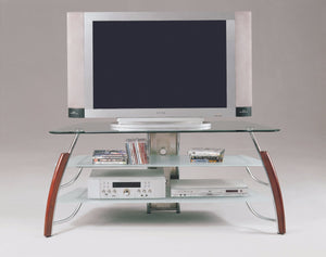 TV Stand With Metal Glide Drawers and Cross Base, Brown