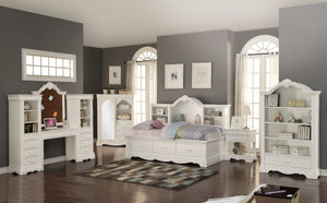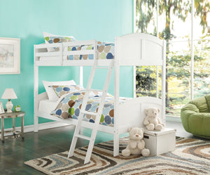 Wooden Twin/Full Bunk Bed with Drawers, White