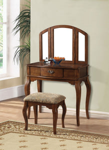 Wooden Vanity Desk with 1 Drawer & Stool, Oak Brown